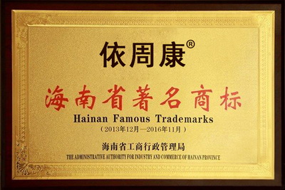 經(jīng)海南省著名商標審核委員會審核,我公司“依周康”商標被海南省工商行政管理局認定為2013年海南省著名商標。