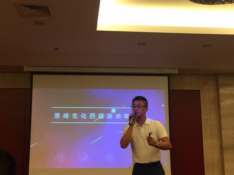 來自全國各地的營銷人員及銷售后臺代表共計50余人參會。會議總結(jié)銷售各部門上半年的工作成績,部署下半年工作計劃,并對在上半年工作中獲得 “超級杯”的團隊進行頒獎。會議以“創(chuàng)心•匠心•忠心”為主題,充分體現(xiàn)了銷售人員面對挑戰(zhàn),面對壓力,不畏艱難,勇于爭先實現(xiàn)公司年初制定的目標(biāo)之決心。景峰集團生化板塊總裁、公司董事長羅斌、公司董事副總經(jīng)理劉冬、副總經(jīng)理王進宇出席會議,招標(biāo)事務(wù)部、運營部、市場學(xué)術(shù)部等相關(guān)職能部門負(fù)責(zé)人參加會議。