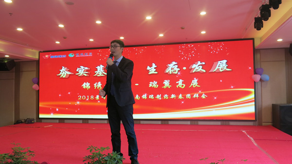 伴著新年鐘聲的臨近,依依惜別了任務(wù)繁重、碩果累累的2017年。2018年02月09日我們相聚在洋溢芬芳的永嘉酒店,充滿激情和喜悅的景峰、錦瑞團(tuán)隊(duì),共同迎接“夯實(shí)基礎(chǔ)、生存•發(fā)展、錦銹前程•瑞翼高展”2018景峰醫(yī)藥•海南錦瑞制藥新春團(tuán)拜會(huì)。