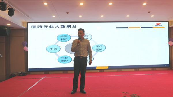 景峰醫(yī)藥研發(fā)中心副總經(jīng)理馬鷹軍先生致辭,并作2018年醫(yī)藥行業(yè)大致劃分,詳細(xì)介紹景峰醫(yī)藥研發(fā)項(xiàng)目的發(fā)展方向。