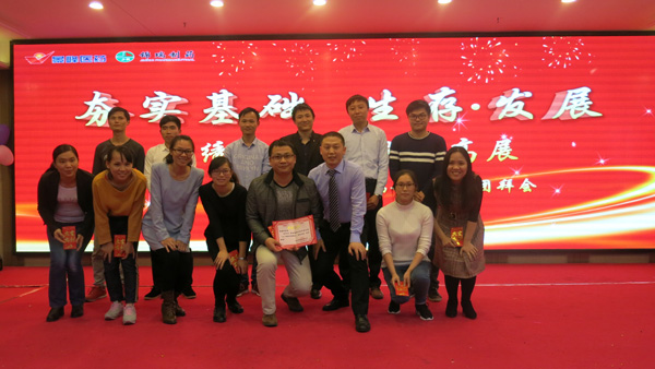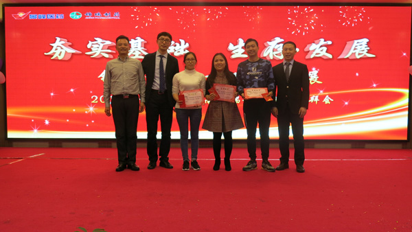 2017年“質(zhì)量保證部”獲得優(yōu)秀團(tuán)隊(duì)獎(jiǎng),總經(jīng)理劉登禹劉總為優(yōu)秀團(tuán)隊(duì)頒獎(jiǎng)。